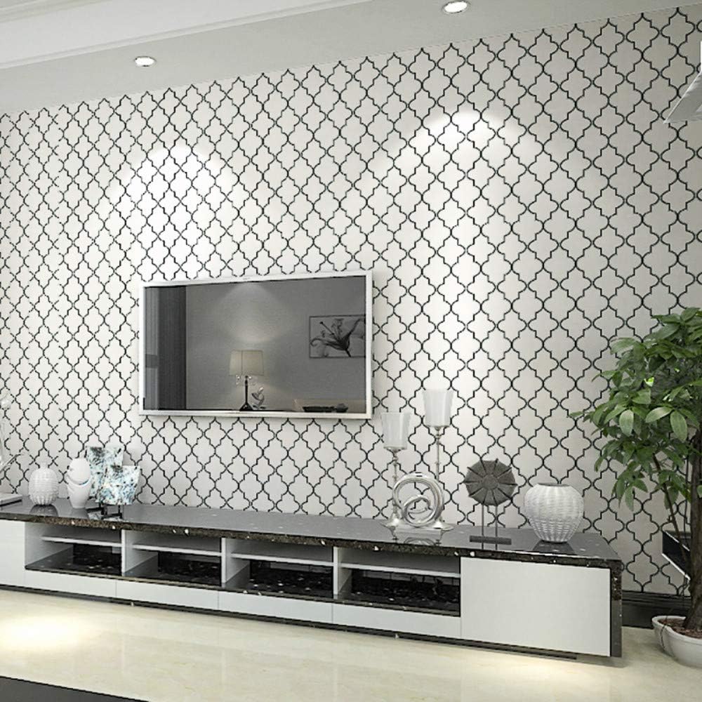 Moroccan Trellis Black White Modern Geometric Pattern Wallpaper Roll Quatrefoil Wall Paper Bedroom Live Room Background Decor Amazon Co Uk Diy Tools