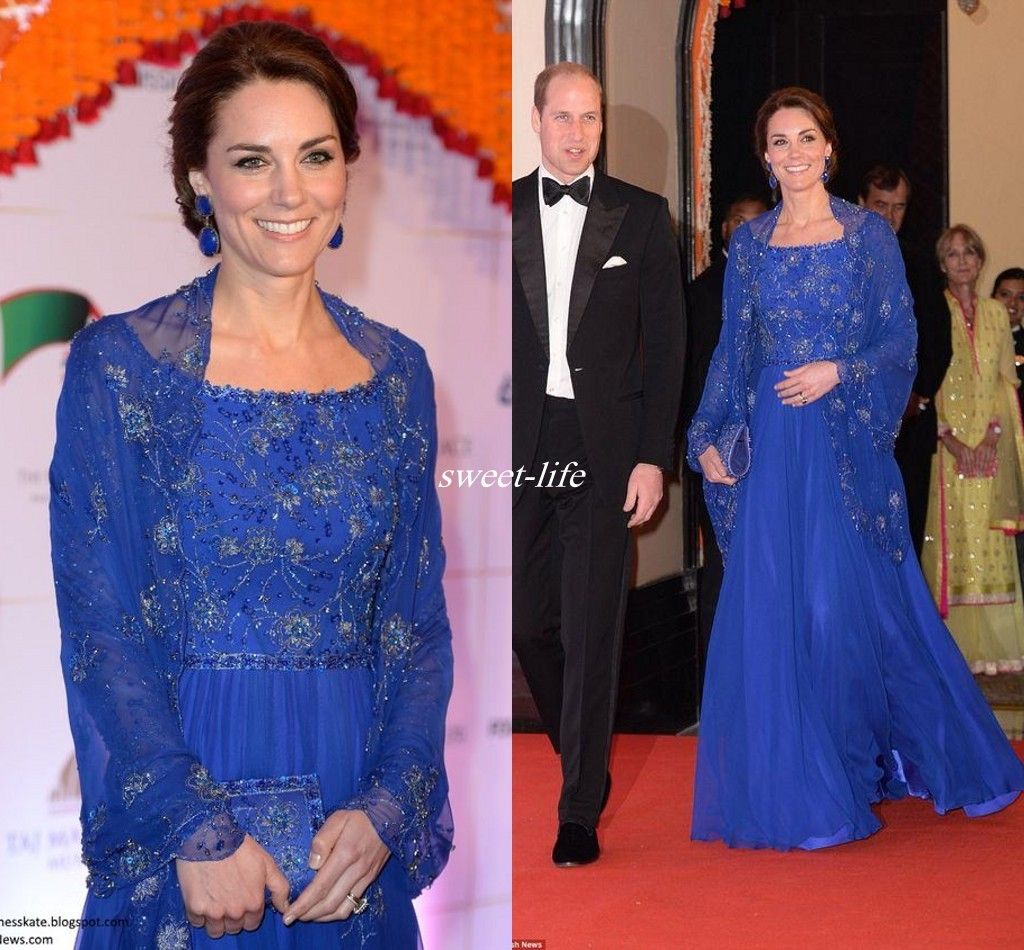 Kate Middleton Celebrity Dresses India Wear 2020 Royal Blue Long Sleeve Evening Gowns Jacket Beaded Chiffon Mother Of The Bride Dresses China Fashion Gowns From Sweet Life 134 62 Dhgate Com